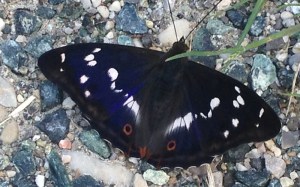 Wir verlassen die Autobahn und fahren die Semmeringpaßstrasse, wo wir eine Pause bei Kaffee im Iglu und Pinguin Pub uns gönnen. Natürlich darf der obligate Cache an der Landesgrenze NÖ-Stmk. nicht fehlen. Dabei entdecken wir für uns wieder einen großen Schillerfalter. Der große Schillerfalter ist leider vom Aussterben bedroht. Künstlich angelegte Fichten- und Kieferwälder statt natürliche Mischwälder zerstören seinen Lebensraum.