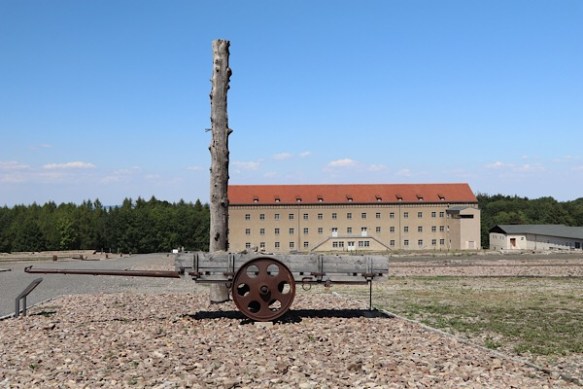 Dann durchschreiten wir das Tor – eine riesige Fläche, wo die ehemaligen Baracken standen – schwarze Steinflächen, die den Grundriss solcher Baracken zeigen. Ein heißer Wind in der drückenden Hitze drückt uns noch zusätzlich. Allein die vage Vorstellung, denn wirklich vorstellen können wir es uns nicht, macht traurig, zornig, wütend und hilflos zugleich.