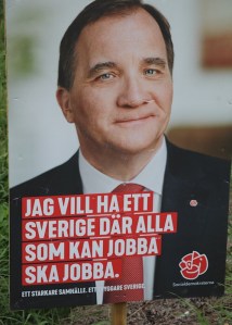 Während wir in den Stadträndern von Ludvika fallen uns immer wieder Wahlkampfplakate auf. Schweden dürfte vor einer Wahl stehen.