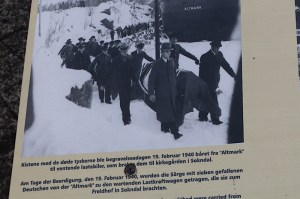 - Im Februar 1940 haben britische Soldaten im Jøssingfjord 299 Kollegen von Ihnen vom Nazi-Schiff Altmark befreit. Brigitte und ich besuchten die Gedenkstätte auf unserer Fahrt nach Farsund.