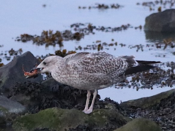 Ich habe beim Fischen beobachtet wie eine Möwe im Flug einen ganzen Makrellenkopf fing und in einem Schluck verschlang.