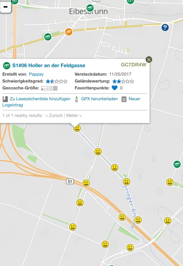 Danke an Pappay, da hier eine 3,5km Runde mit 10 Caches und einem Bonus ausgelegt hat. Zusätzlich kann man GC2QBB7 – „schiacher Ort“ mitnehmen.
