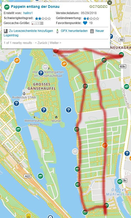 Die Alte Donau ist ein wichtiges Erholungsgebiet mitten in Wien. Der nächste Cache erinnert an die Freizeitnutzung mit Ruder- und Tretbooten und als Segelrevier für AnfängerInnen.