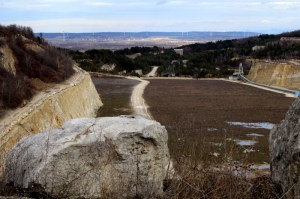 Oben am Steinbruch angekommen haben wir eine tolle Aussicht. Rund um den Abgrund liegen große Findlinge rund um das Abbaugebiet wie Wächter eines Abgrunds. Welche Geheimnisse der Geschichte werden hier bewacht? In der Mannersdorfer Ortschronik kann man davon einiges Nachlesen. Wir machen hier am