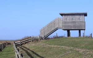 Wir ziehen nordwärts die Küste entlang zur einer kleinen Reise in die Welt der Zugvögel, die sich ferzeit woanders vergnügen. Entlang des Naturschutzgebietes wndern wir zum Aussichtsturm der Ornitologen. Der Holzbau der aus Holzlatten gebaut ist und wo Schiebefenster den Vogelvoaeuren die Möglichkeit zur heimlichen Beobachtung bieten. Allerdings trotz der schützenden Latten pfeift er Wind durch die Spalten. Knapp vor 14:00 tragen wir uns in das Logbuch ein. Während wir uns der Brise stellen machtbAutkar ein Nickerchen im Auto.