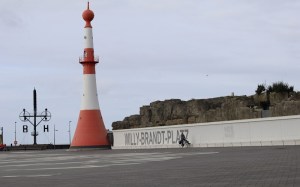Am Deich entlang links die Weser und die Hohewegrinne rechts die Hinterseite des Schifffahrtsmuseum bis zum Willy Brandt Platz. Hier am Platz steht auch das Auswanderer-denkmal. Wir suchen den nächsten Cache beim Simon-Loschen-Turm, drr älteste noch im Betrieb befindliche Festlandleuchtturm an der Nordseeküste. Mehr Infos findet ihr im Listing. Wir finden den Cache um 13:48. Nun stärken wir uns und manche machen eine ausgiebige Shoppingtour und nuzen die Sonderangebote.