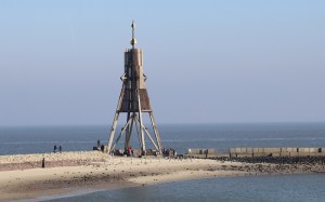 Die Elbmündung hat auf Höhe der Kugelbake eine Breite von etwa 18 km. Gleichzeitig markiert die Kugelbake den nördlichsten Punkt Niedersachsens. Symbolisch betrachtet trennt das Seezeichen das Elbe- und das Weser-Mündungsgebiet voneinander. Während der Suche spricht mich ein ein Geocacherkollege mit einer Frage an „Wenn sie einen Schreiber haben kann ich ihnen helfen!“ Beide sind wie der Meinung, dass dies unmöglich das richtige Versteck des Caches sein kann. Wir tragen uns um 12:48 ins Logbuch ein. Im Listing erklärt der Owner woher der Ausdruck Bake kommt. Der Ausdruck Bake geht auf das Mittelalter zurück, in dem alle Seezeichen – auch Leuchttürme – so genannt wurden. Sie ist das Wahrzeichen von Cuxhaven und seit 1913 im Wappen der Stadt abgebildet. Ein Vorgängerbauwerk diente noch als Leuchtturm; heute wird die Kugelbake nur noch nachts als Touristenattraktion angestrahlt.