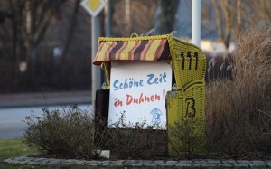 Wiederum fröhnen wir beim Strandspaziergang der tollen Sonne und genhemigen uns Kaffee und Kuchen beim TB-Hotel Alte Lesehalle Duhnen. Mittels einer alten Schreibmaschine trage ich uns in das Logbuch ein. Einfach toll aufbereitet dieses TB-Hotel, wo wir auch einen Gästetauach vornehmen. Auf dem Dach der Lesehalle wurde 1958 das Duhner Leuchtfeuer installiert, dessen Aufgabe später vom Neuwerker Leuchtturm übernommen wurde (ab 1. Juni 1980). Danach erinnerte nur noch eine schwach brennende Lampe an die ursprüngliche Bedeutung dieses Feuers, um nächtlichen Wattwanderern als Orientierung zu dienen.