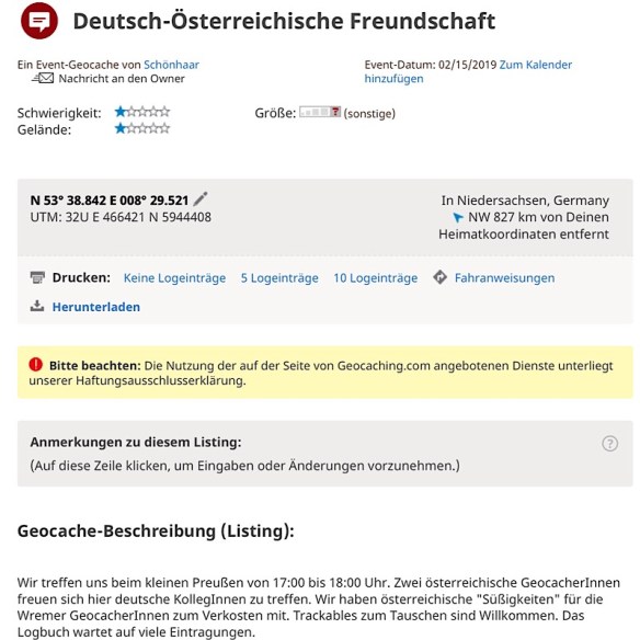 Donna Makrella spricht mir aus dem Herzen wenn sie schreibt – War eine nette Runde. Die Zeit ist ziemlich rasch vergangen. Mit Begeisterung habe ich den diversen bisherigen Events der CacherInnen gelauscht. Von Gartenevents, die zu einem Mega wurden, bis zu 365TageEvents in Niedersachsen reichten die Erfahrungen. Hier ist immer viel los. Danke für den Austausch. Freue mich schon auf die morgige Grünkohltour.