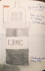 Knapp nach 16:00 machte ich mich auf den Weg ab von der Basisstation zum Leuchtturm. Der „Kleine Preuße“ ist 1906 als Quermarkenfeuer am Wremer Deich errichtet worden. 1930 wurde der Turm dort abgebaut und als Spitze des 26,15 m hohen Oberfeuers Imsum installiert. Wegen der Verlegung des Fahrwassers wurde das Oberfeuer Imsum im Jahre 1967 abgebrochen. Mit ihm verschwand auch der „Kleine Preuße“ von der Bildfläche.