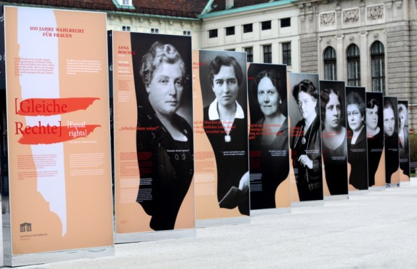 Am Heldenplatz lösten wir die Aufgabe für den Virtuale Cache von Lunedi – GC7B803. Dabei konnten wir uns anschließend die Ausstellung „100 Jahre Frauenwahlrecht“ ansehen.