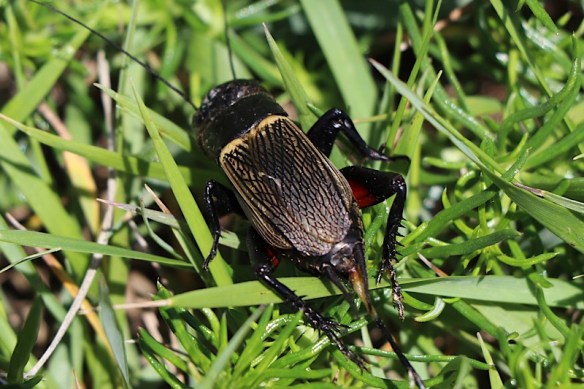Beim Abstieg vom Beobachtungsturm entdeckten wir eine echte Feldgrille, die sich in Sicherheit brachte.