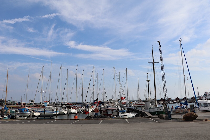 Nach einem gemütlichen Frühstück im Schatten und einem letzten Rundgang im Garten der 600 Kräuter am Trollhof folgen wir meinen Urgenen nach Norden. Zwar betreten wir kein Langschiff oder Knorr, sondern nur die Fähre von Puttgarden nach Rödby Havn. Heute wollen wir in das Hafenleben des kleinen dänischen Ortes Rødvig Havn eintauchen. Idealerweise gibt es dort am Hafen einige Stellplätze für Wohnmobile. Die Anmeldung beim Hafenmeister erledigen wir bei einem Automaten.