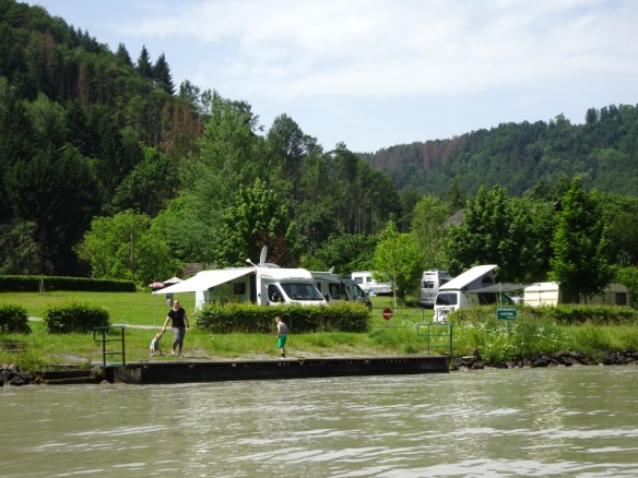 Das Gasthaus zur Blauen Donau auf der rechten Donauseite kündigte den Donauhafen Schlögen mit Yachthafen, Bootstankstelle, Campingplatz und Hotelanlage an. In der Römerzeit stand hier auch ein Kleinkastell. Eine weitere Herausforderung erwartete hier unsere junge Kapitänin, sie musste