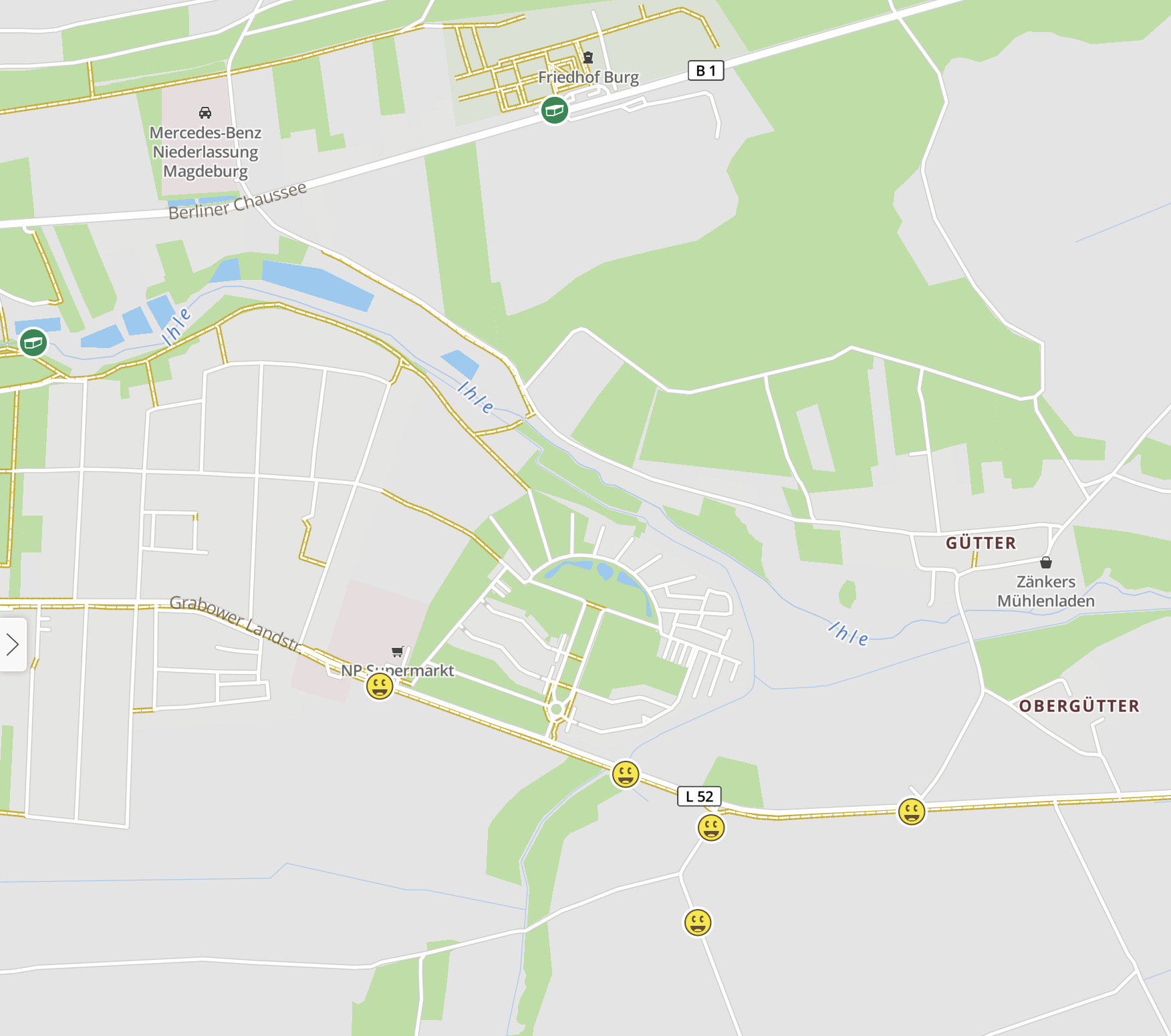 Mittlerweile ist es Abend geworden und bei einer kleinen Radtour (7,5 km) heben wir noch ein paar Caches. Von der Mühle treten wir zum Radweg von Burg nach Grabow, wo vier Dosen von Butzi 1504 #1 bis #4 heben. Zum Abschluß heben wir Burg-Ost. Beim Suchen klettere ich auch unter eine kleine Brücke und suche nach dem Cache. Beim Heraufklettern erschrecke ich einen Hund und seine Besitzerin als ich aus dem Untergrund auftauche. Der Hund ist in eine Schockstarre verfallen und wollte sich eine zeitlang nicht mehr bewegen.