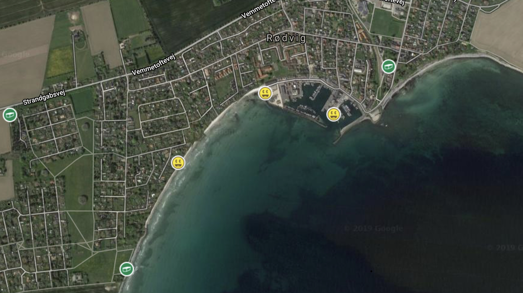 - 838 km Luftlinie von zu Hause entfernt ist ein Cache vom selben Owner Rødvig strand – GC5YQPF unser Ziel. Hier erblicken wir den Sandstrand und einige Badende und SonnenanbeterInnen. Das Strandleben wirkt animierend auf uns.