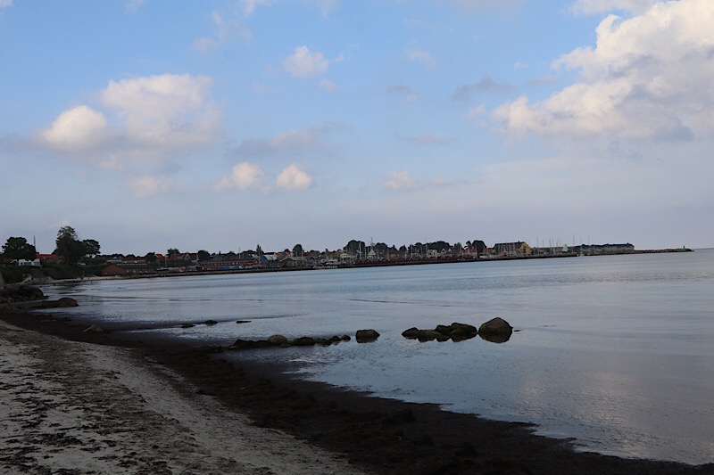 Wir haben direkten Blick auf den Fischereihafen. Schwarze und Rote Fähnchen der zahlreichen Bojen, die auf diesen Schiffen vorbereitet sind, flattern im Wind. Der typische Geruch der Meeresküste umweht unsere Näschen. Für manche ist das olfaktorische Herausforderung für mich das Signal in einer vertrauten Umgebung angekommen zu sein. Draußen vor Hafen ziehen einige SeglerInnen, die vom Lystbådehavn abgefahren sind ihre Runden.