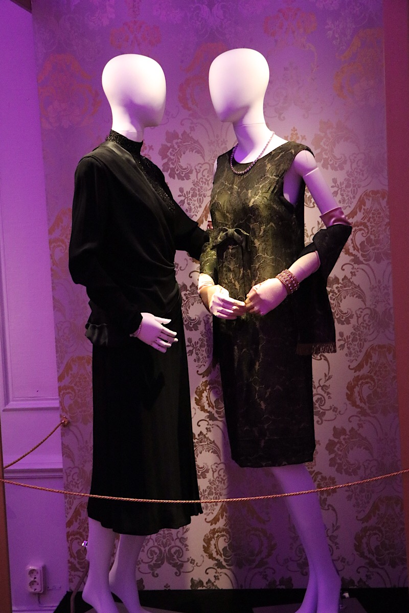 Im Erdgeschoß waren Bilder und Plastiken ausgestellt, die durchaus interessant und schön waren. Einiges hat mir ganz gut gefallen. Allerdings braucht es auch dazu die Räume in einer Wohnung oder Haus, die wie nicht haben. Und zweitens würde ich das Geld wahrscheinlich anders anlegen. Die Preise waren geschmalzen. Im ersten Stock, die Kleider, die ich nur von den „steifen“ Bällen und Veranstaltungen kenne. Für schöne, lustige und unterhaltsame Tanzabende braucht es nicht diese Garderobe – andere finden das stilvoll, so unterschiedlich sind die Geschmäcker.