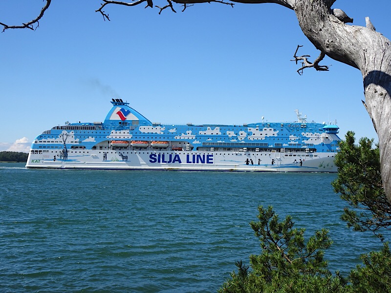 Als Hauptstadt der Åland Inseln wird Mariehamn von vielen ArbeitnehmerInnen und TouristInnen als Ausgangspunkt für eine Fahrt nach Schweden, Estland oder Finnland genutzt. Die Viking Line, Talink Car und Silja Line steuern mit ihren Fährschiffen den Hafen an. Die Städte Kapellskar, Helsinki, Stockholm, Åbo, Turku und Talinn werden somit mit Mariehamn verbunden. Wir hatten Glück und konnten drei Fährschiffe beim Einlaufen in den Fährhafen beobachten. Den dazugehörigen Cache – Välkommen till Mariehamn – GC2VD0J von maxitulpa hoben wir auch.