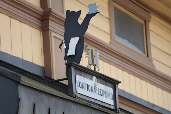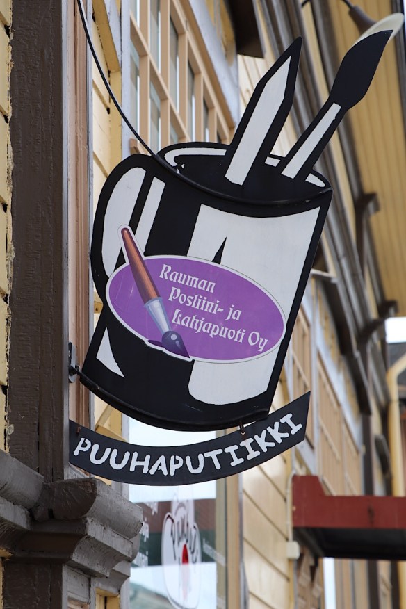 Bei unserem Spaziergang durch die Innenstadt peilen wir natürlich einige Geocaches an und erfahren damit einiges über die Geschichte und Entwicklungen der Stadt. Im GC6B7KX von villesamuel – Eestlased Rauma – schreibt der Owner, dass Rauma die Heimat vieler Menschen aus Estland ist und sie die Sprache über Jahrzehnte mitgeprägt haben und sich ein eigener finnischer Dialekt entwickelt hat. Idmani verdanken wir das Versteck von Vanha Rauma – GC76D4E. Während wir durch die Strassen und Gassen spazieren fallen mir immer wieder die „lustigen unf kreativen“ Schilder an den Geschäften auf. Manchmal suche ich spezielle Motive bei diesen Stadtspaziergängen und diese haben sich dazu angeboten.