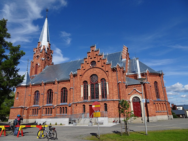 Uns fällt generell hier in Finnland auf, dass es viele Kirchen mit unterschiedlichsten Glaubensrichtungen in den Städten gibt. Hier stehen auf engsten Raum drei Kirchen.