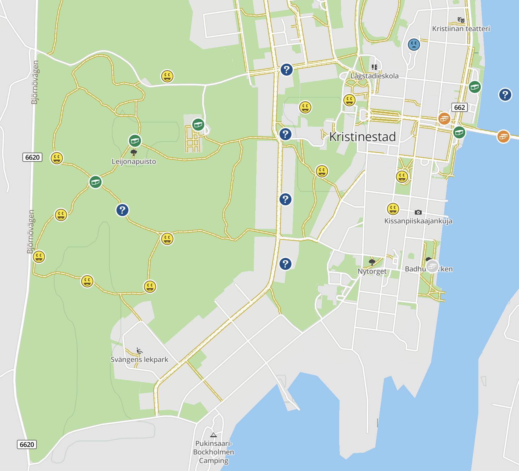Nach den beiden Kirchen komplettieren wir unseren heutigen Tag mit zwei Caches im Wald, wo wir mit unseren Rädern auf schmalen Waldwegen unterwegs sind. Jomppacache #1 (GC6K1KY) und Jomppacache #2 (GC6K1ME). Diese beiden Dosen befinden sich auf dem Rådhusberget im Zentrum von Kristinestad. Bei der Mühle haben wir leider keinen Erfolg, obwohl wir mehr als 30 Minuten suchen.
