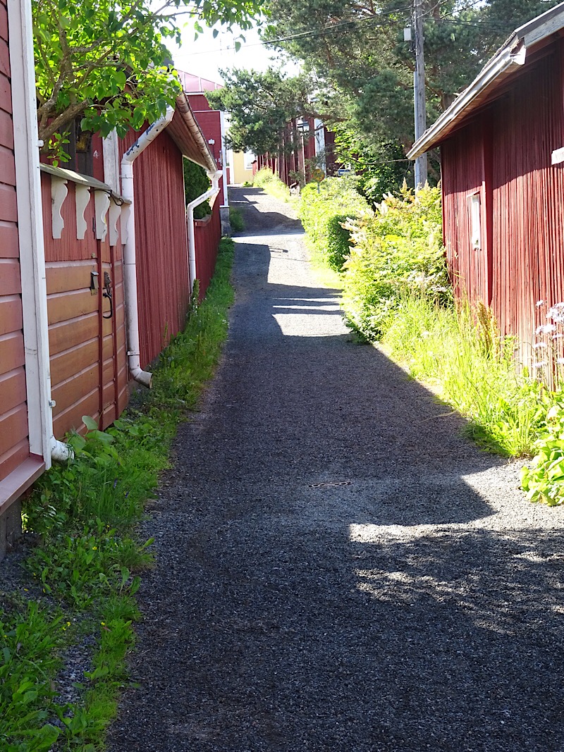 Am Nachmittag starten wie mit unseren Rädern in die Stadt. Der Cache Kissanpiiskaaja – GCHNDR von perttuh adopted by McBack führt uns zum ersten Geocache der Stadt und einer der schmalsten Strassen Finnlands mit einer Breite von 299cm. Tatsächlich kam uns ein Auto entgegen, als wir mit unseren Fahrrädern die Gasse entlang fuhren.