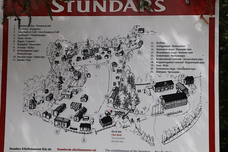 Stundars ist eines der größten Freilichtmuseen in Finnland, ein Handarbeitsdorf in Ostbottnien und eine sehr beliebte Attraktion südlich von Vaasa. Im Sommer kann man im Museumsdorf spazieren gehen und dabei auf „Bewohner“ aus dem Jahr 1917 treffen. Die Anreise war spannend, denn knapp bis vor das Museum gab es keine Hinweisschilder. Hier die Adresse für BesucherInnen: Stundarsvägen 5, 65450 Solf