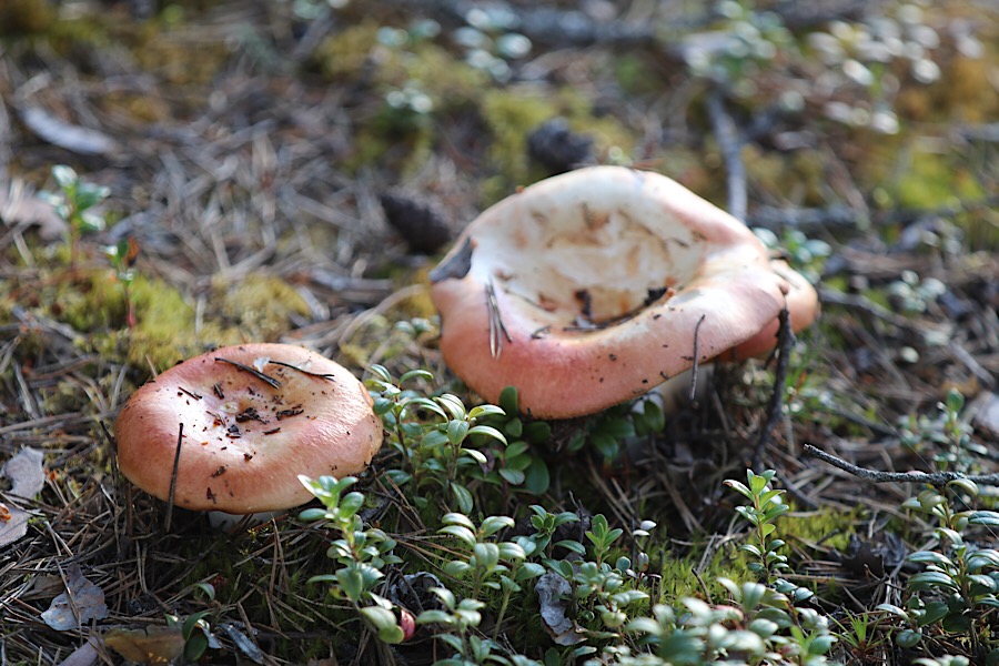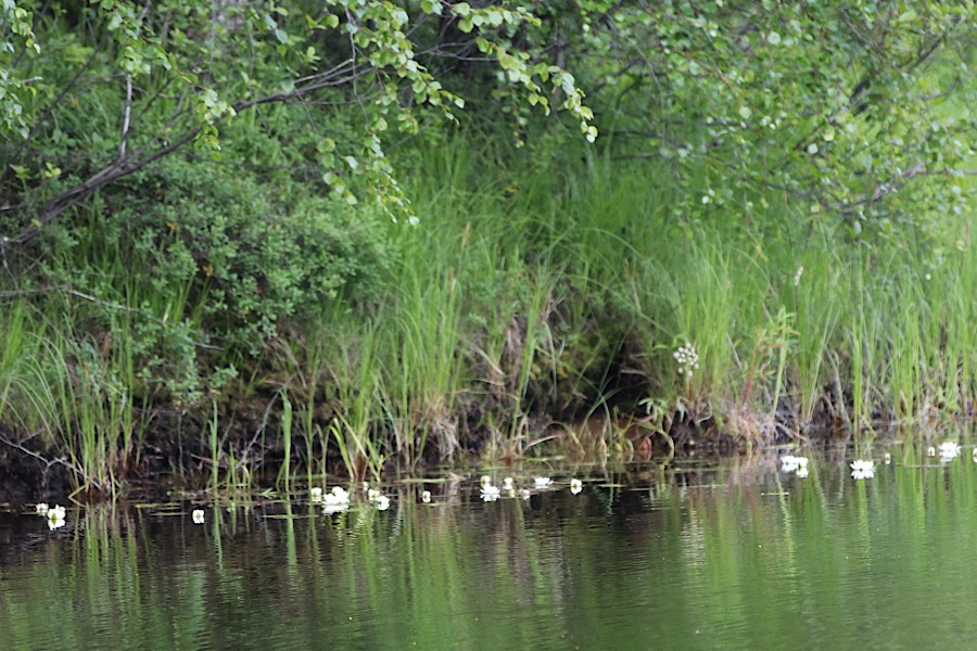 Ich nehme zusätzlich einen Becher mit, um ein paar Schwarzbeeren zu ergattern. Ich dringe dabei in das Revier und Brutgebiet der Gelsen ein, die dementsprechend erfreut auf den Eindringling reagieren. Endlich etwas zum Aussaugen. Ich schütze mich mit dem Kopfnetz, das ich seit meiner Wanderung mit Michael im Øvre Dividalen habe. Mit dem Nachteil, dass damit kein Naschen möglich ist.
