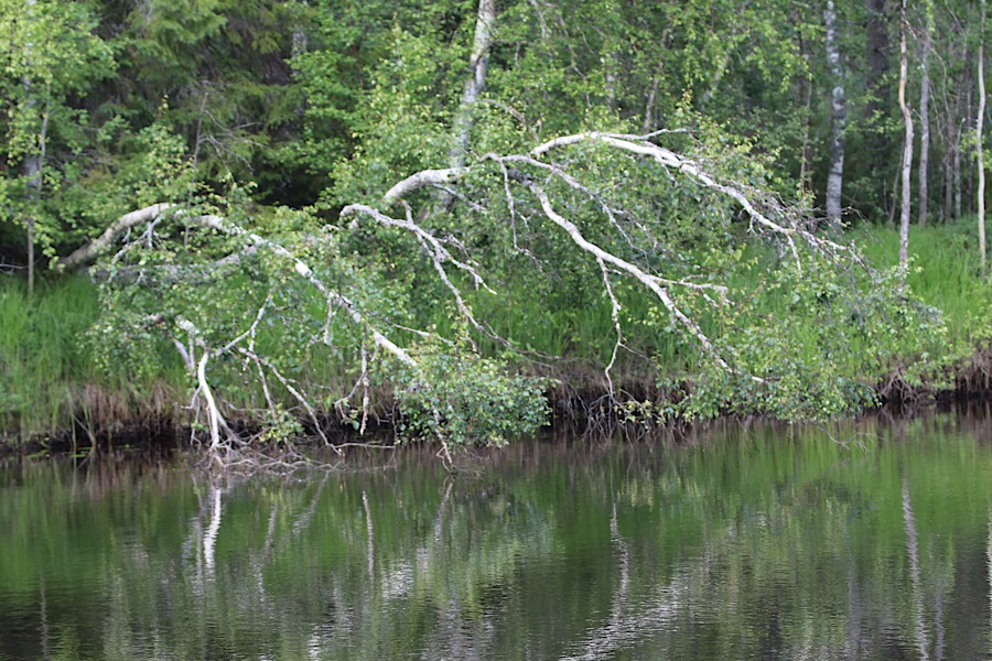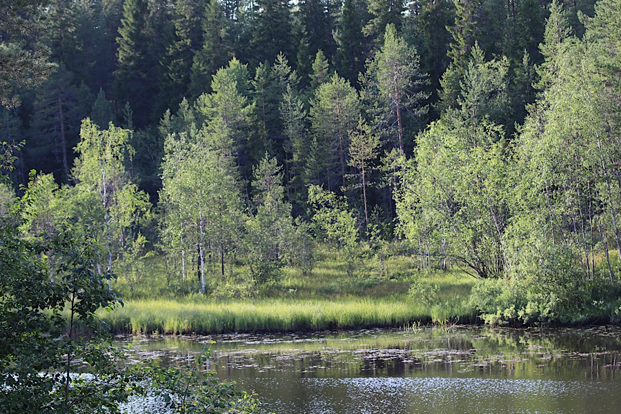 Wir tauchen ein in die Natur Lapplands. Lange gerade Straßen, Kiefern, Föhren, Birkenwälder und natürlich unsere treuen BegleiterInnen der nächsten Tage, Gelsen. Der Campingplatz liegt am Kivarinjoki, der in den Kivarinjärvi fließt.
