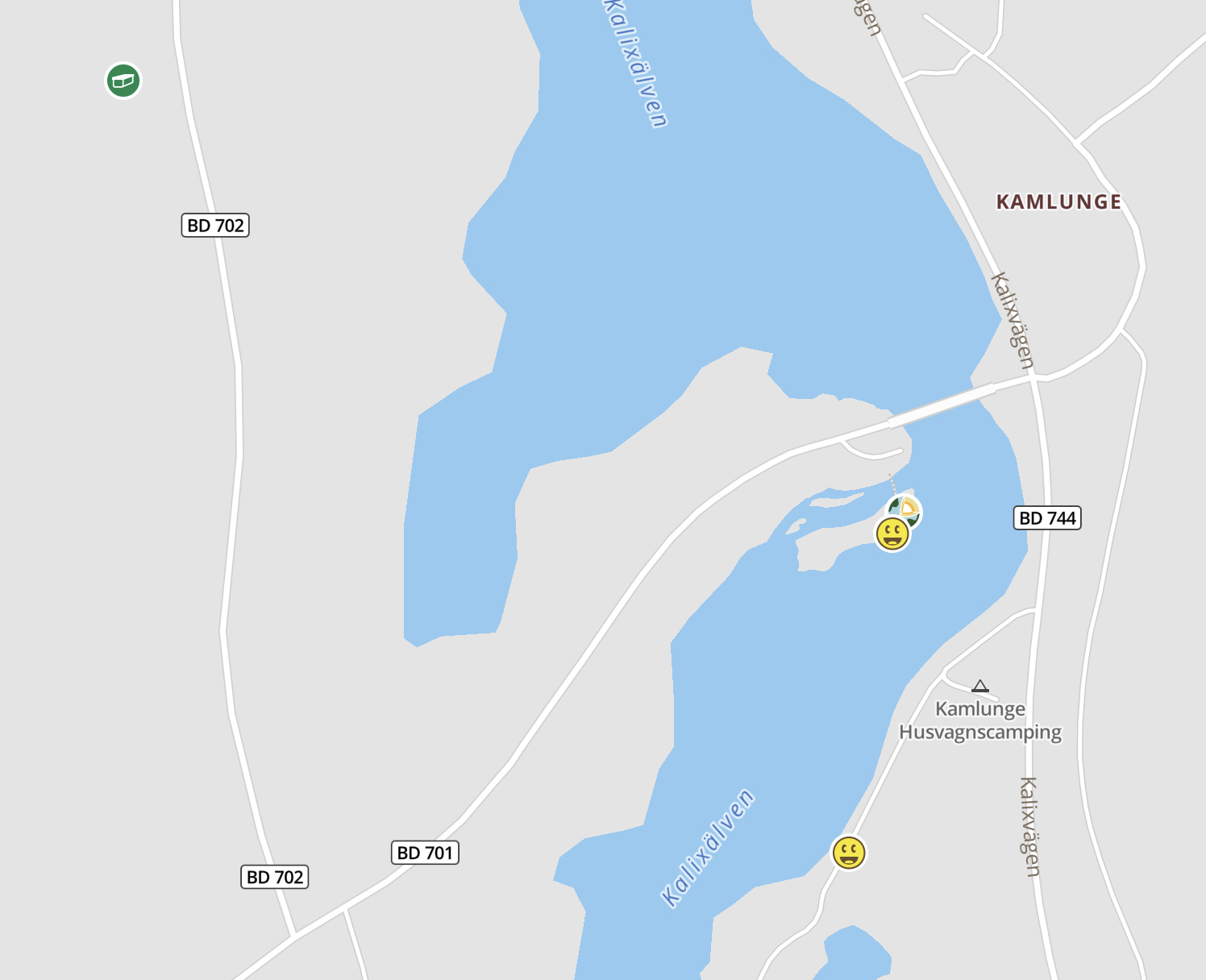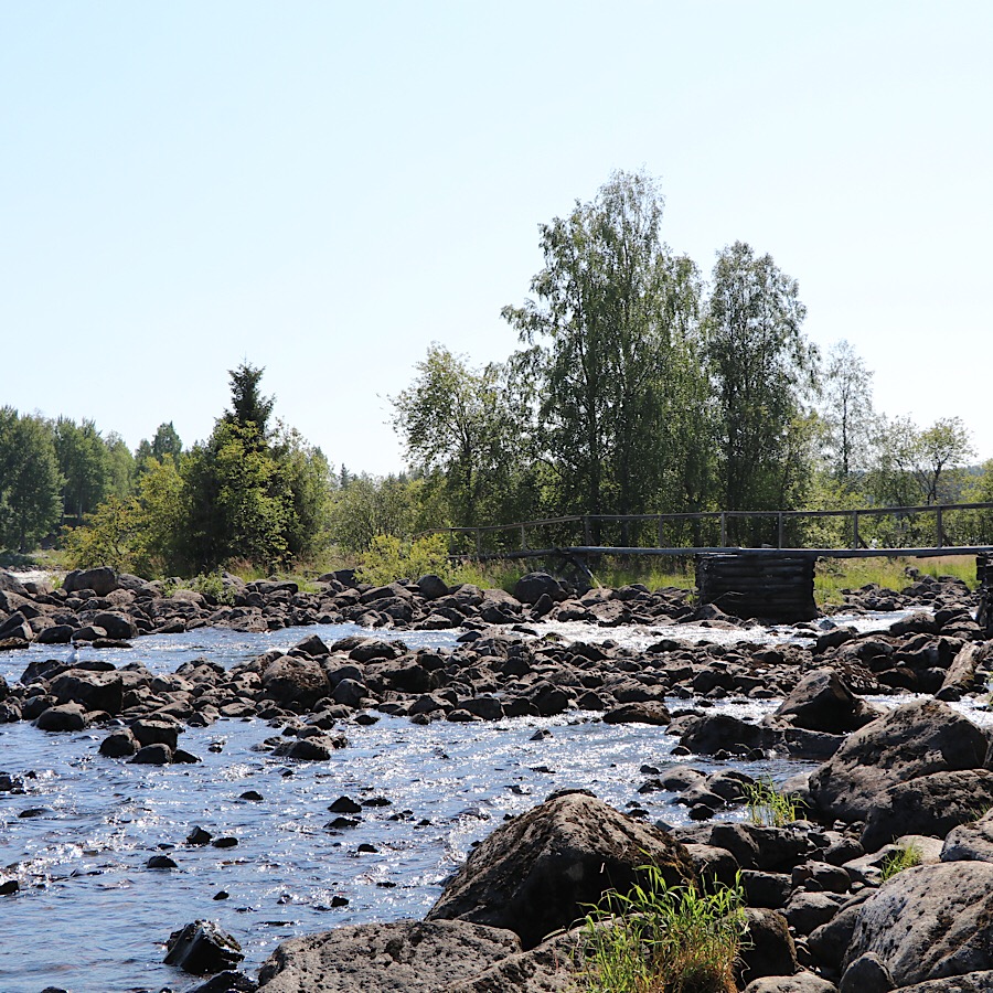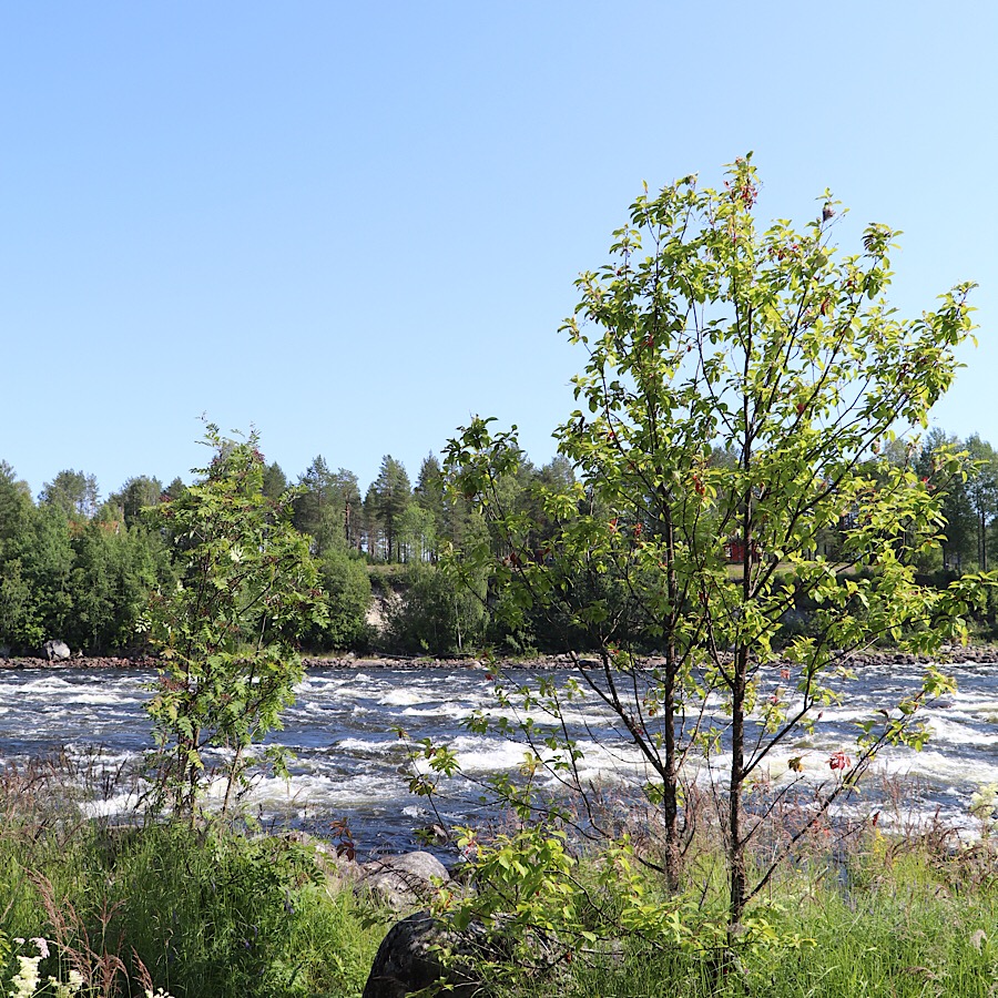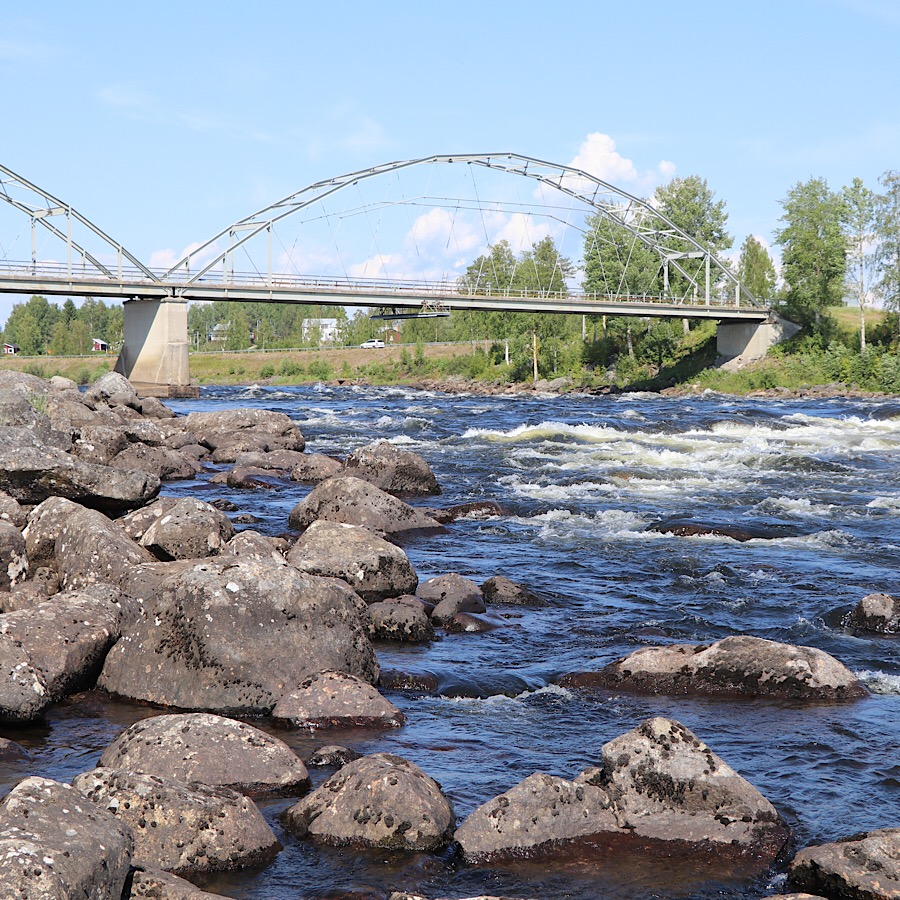 Wir nehmen die Schotterpiste zurück von Kätkavaara und treffen in Loue auf die E75, weiter auf der 927 (Arpelantie) und Strasse 21 südwärts in Skandinavien. In Tornio fahren wir über die finnische-schwedische Grenze und sehen als erstes eine riesige IKEA-Filiale mit hunderten Autos und vielen Wohnmobilen zum Einkauf mittags am Sonntag. Westwärts weiter treffen wir erstmals auf den Kalixälven dem wir auf der BD 744 bis Kamlunge folgen.