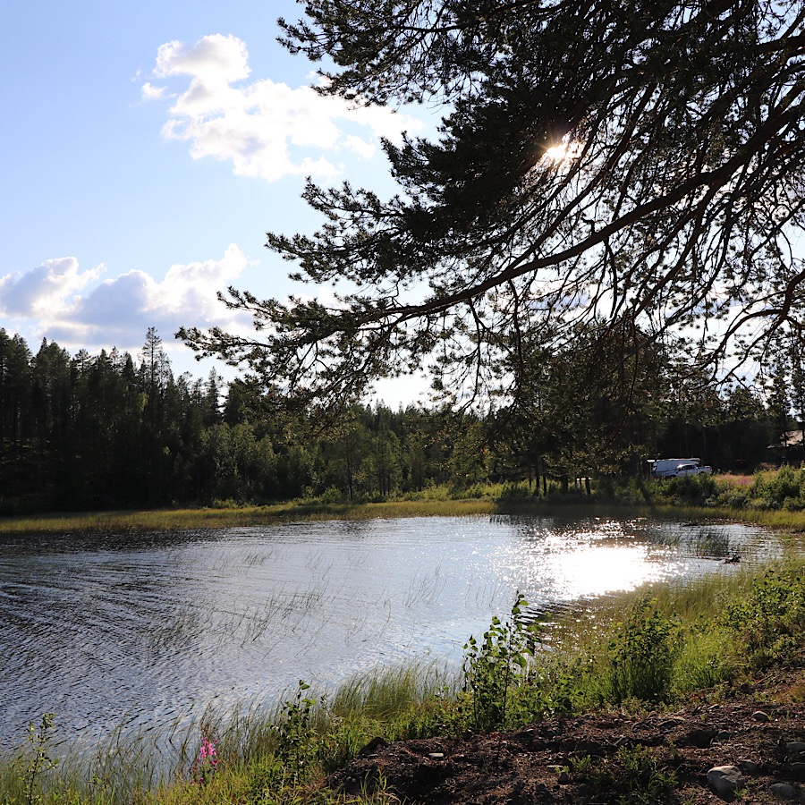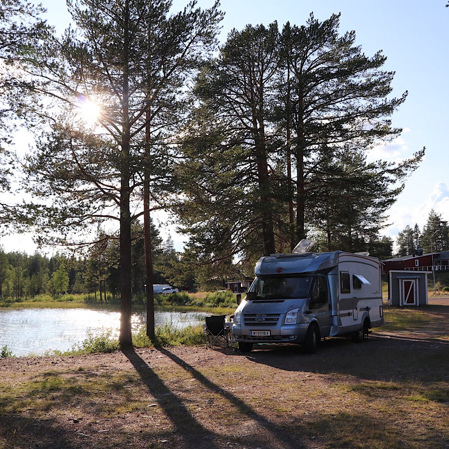 Am späten Nachmittag um 17:15 treffen wir am Campingplatz – Norrskensgården ein. Nachdem wir niemanden in der Rezeption, die eigentlich seit 14:00 geöffnet sein sollte. antreffen, machen wir uns auf die Suche. Zwei ältere Damen treten mit den Bikes um die Kurve und von denen bekomme ich den Code für den Sanitärbereich. Für die Anmeldung werde ich auf 18:00 vertröstet.