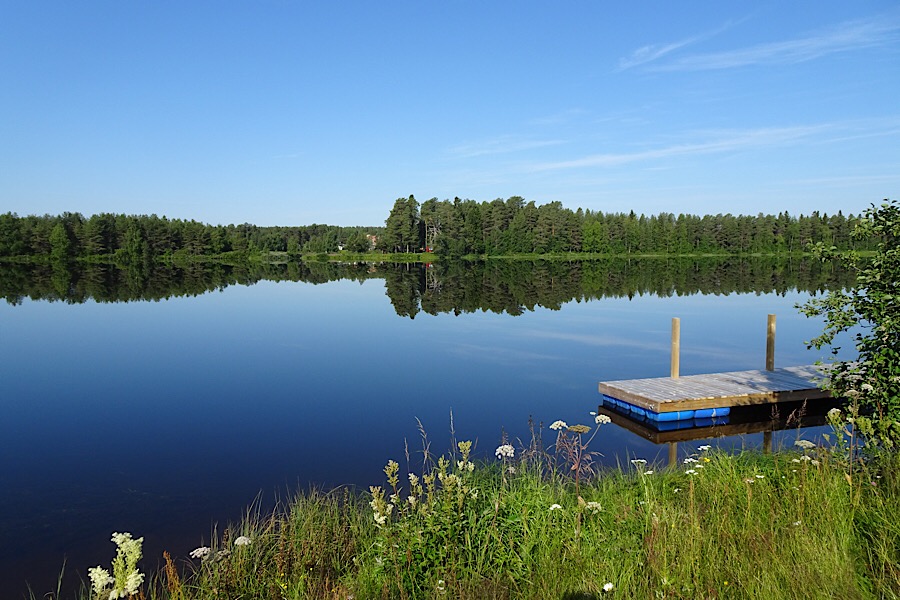 Die Abkühlung im Mensträsket war fein, aber die Hitze bei der Fahrt durch das südliche, schwedische Lappland machte einer neuerliche Erfrischung notwendig. Am CP am Ångermanälven in Åsele fanden wir den richtigen Platz dafür. Wir hatten einen tollen Stellplatz direkt am Fluss und direkten Zugang zum Badesteg, den wir auch nutzten. Das Flusswasser war zwar prickelnder als der See sorgte dafür perfekt für die Abkühlung.