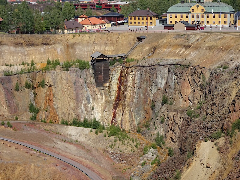 Die Mine Falu ist eine ehemalige Kupfermine, die etwa einen Kilometer von Falun entfernt liegt. Der Bergbau begann im 8. Jahrhundert und endete 1992. Die Mine war zu ihrer Blütezeit eine der größten in Schweden und seit 2001 ein Weltkulturerbe. Neben Kupfer wurden in der Mine auch Sulfiderze, Zink, Blei, Wismut, Silber und Gold abgebaut. Durch einen Multicache 🎁 En vandring runt Falu koppargruva – GC5C0P3 von kaffemannen mit mehreren Stationen erforschten wir die Geschichte der Mine.