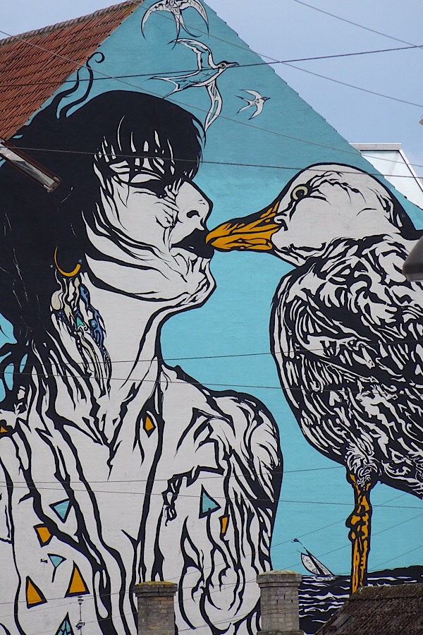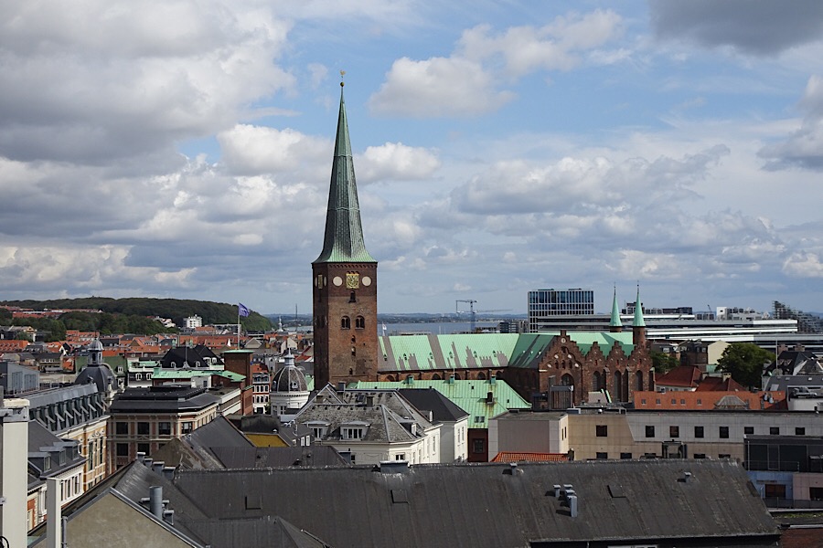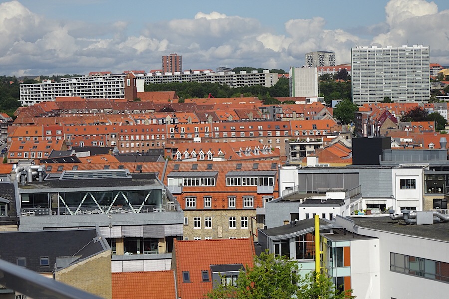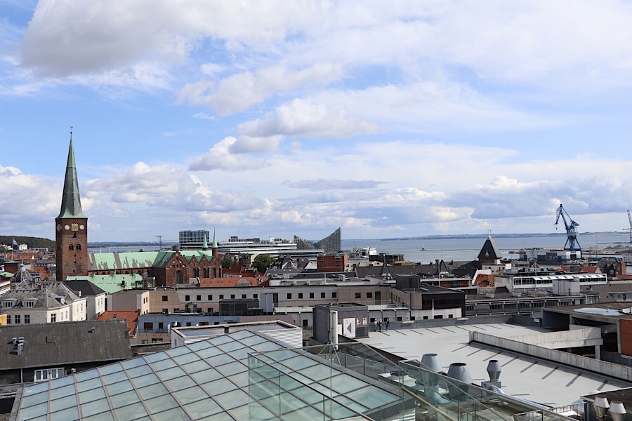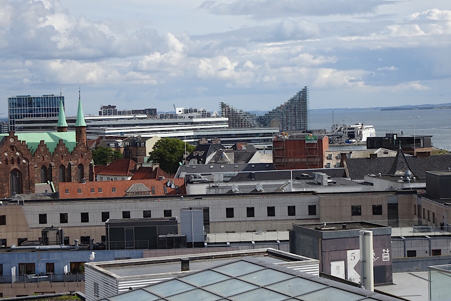 Blommehaven, der Campingplatz in Århus, ist unser Treffpunkt mit den lieben FreundInnen Uschi und Willi aus Linz. Beide touren seit einigen Tagen mit Wohnwagen und Boot durch Dänemark. Nach einer abendlichen Fischparty (warmgeräucherten Lachs, Brathering und Fischpastete) ging es nächsten Tag per Fahrrad in das 7 km entfernte Zentrum von Århus. Der Radweg führt entlang der südlich von Århus gelegenen Bucht des Kattegat fast bis ins Zentrum.