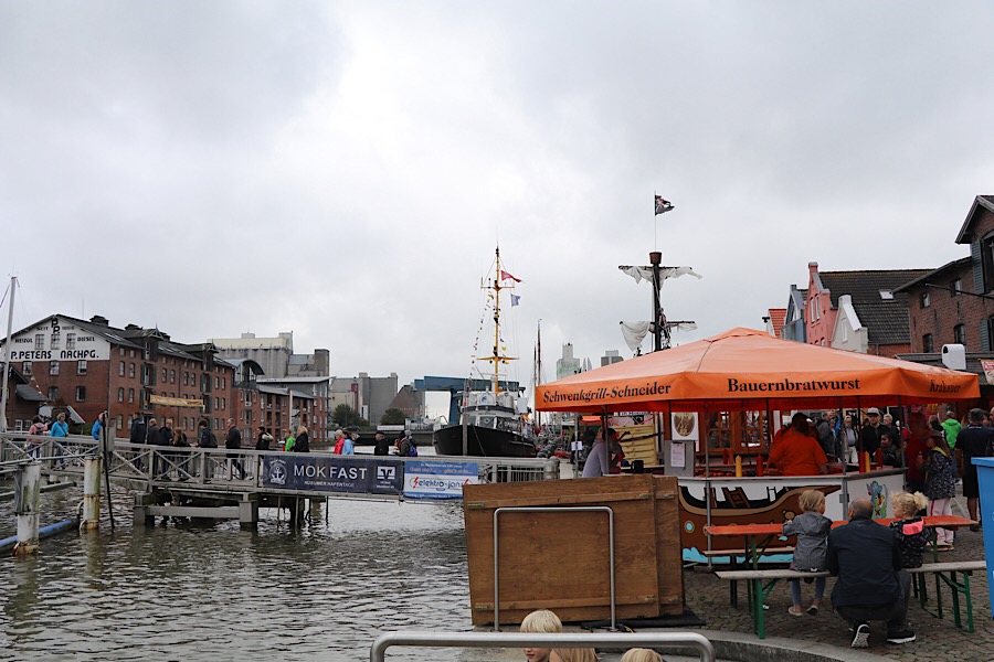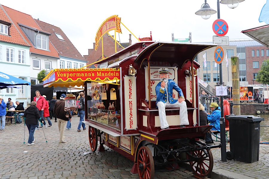 Bratwürst, Süssigkeiten aller Art und wichtige Gegenstände, die jeder von uns dringend braucht gab es an jeder Ecke. Wir waren auf fürs Erste auf Fischbrötchen fixiert – Krabben (Granat wie sie in Friesland heissen) mit Remoulade und dazu ein Dithmarscher Bier.