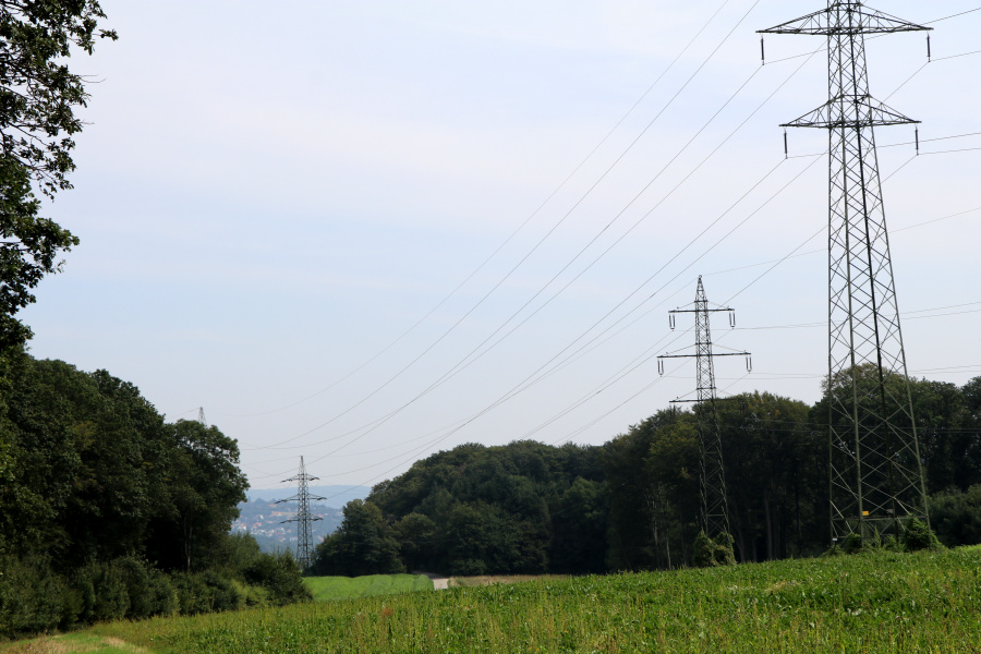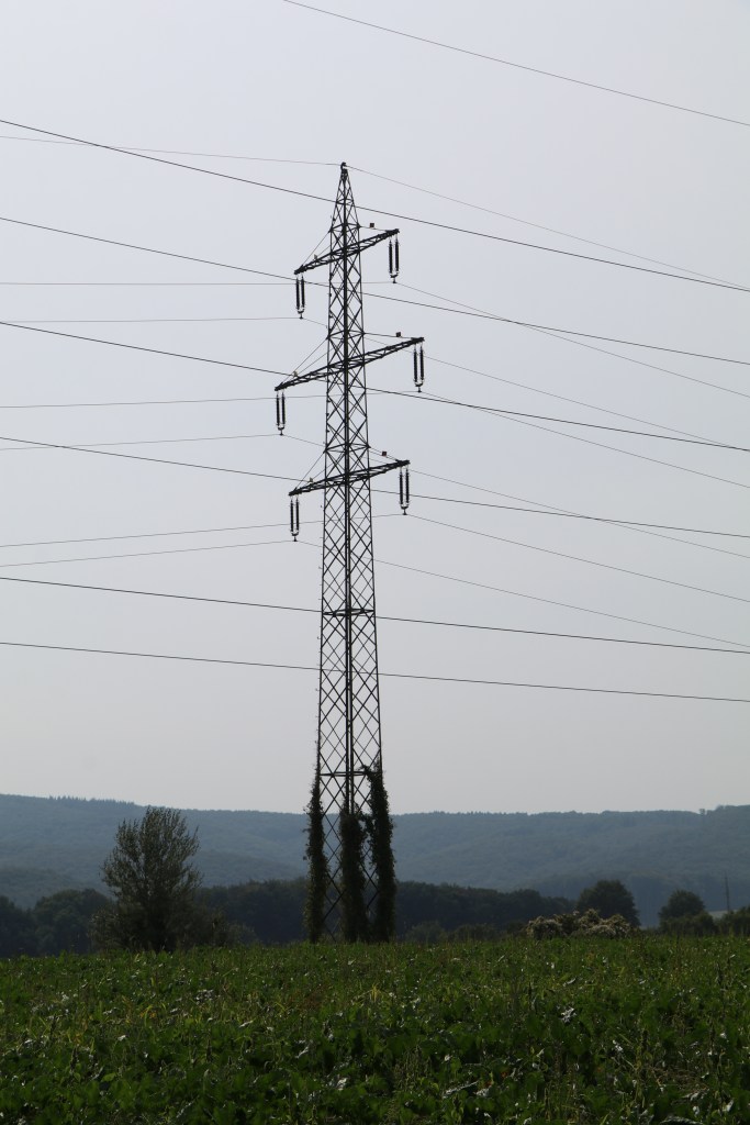 Felder und Hochspannungsleitungen prägten das Bild – also wieder rasch zurück in den Wald zu lebenden Bäumen.
