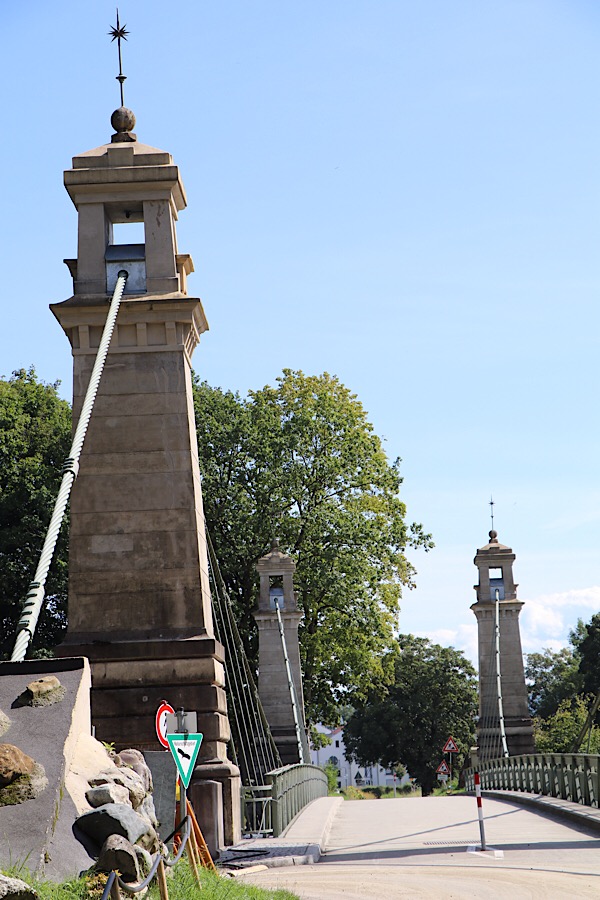 Die Hängebrücke zwischen Langenargen und Kressbronn ist (nach zwei Fußgängerbrücken) die drittälteste Hängebrücke Deutschlands. Aufgrund der Erfahrungen mit schweren und vernichtenden Hochwassern entschloss man sich für eine Brücke ohne Pfeiler. Der Baugrund ließ eine massive Konstruktion nicht zu, so dass sich die Planungen an der von der Maschinenfabrik Esslingen gebauten eisernen Donaubrücke in Budapest orientierten. Die Bauarbeiten begannen dann im Jahr 1896, die sich bis Dezember 1897 dauerte. Am 25. Januar 1898 wurde die Brücke feierlich eingeweiht und dem Verkehr freigegeben.