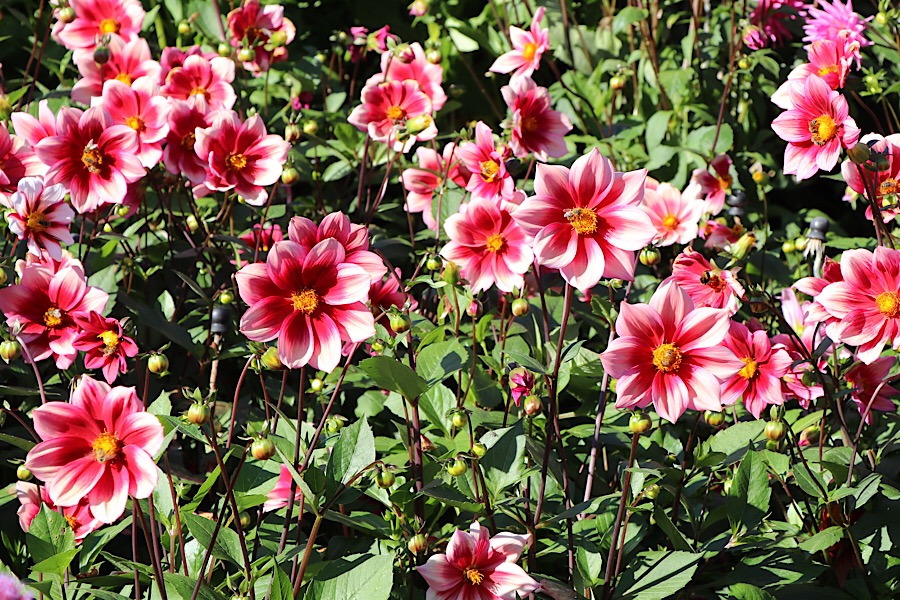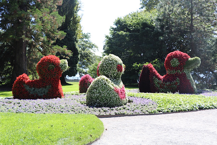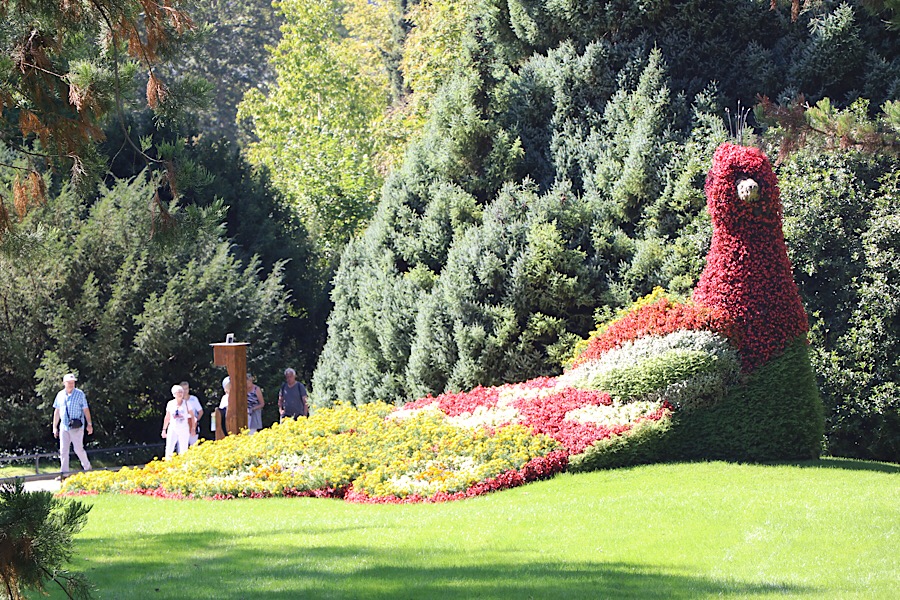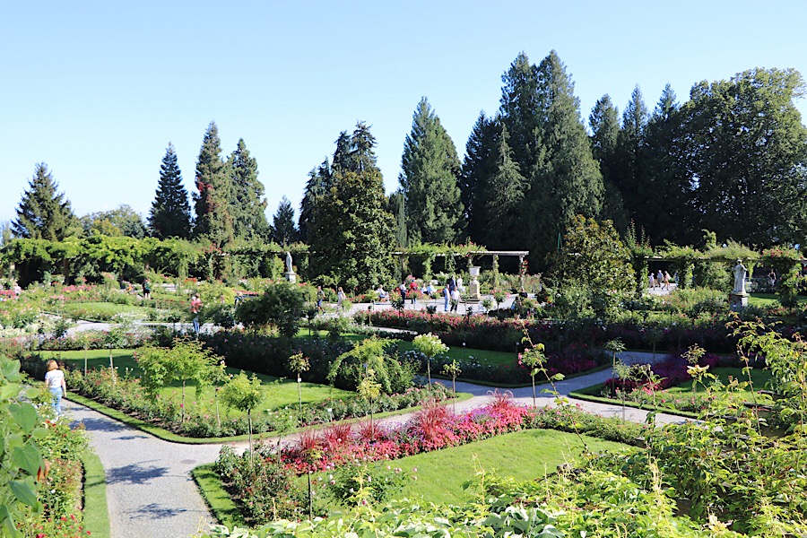 Bevor wir zu drittgrößten Insel des Bodensse kommen, nutzen wir die warmen Sonnenstrahlen zu einem feinen Frühstück im Freien. Mit unseren Rädern fahren wir zum landseitigen Eingang der 45 Hektar großen Insel Mainau. Der Eintritt mit € 21,50 ist aus meiner Sicht teuer. Wir umrunden und durchqueren die Insel bei einem grandiosen Spätsommer und genießen die tolle Blumenpracht. Bedingt durch das günstige Bodenseeklima wachsen auf dem tropfenförmigen Eiland Palmen und andere mediterrane Pflanzen im Schlosspark. Von den neugezüchteten Weinsorten haben wir auch gekostet.
