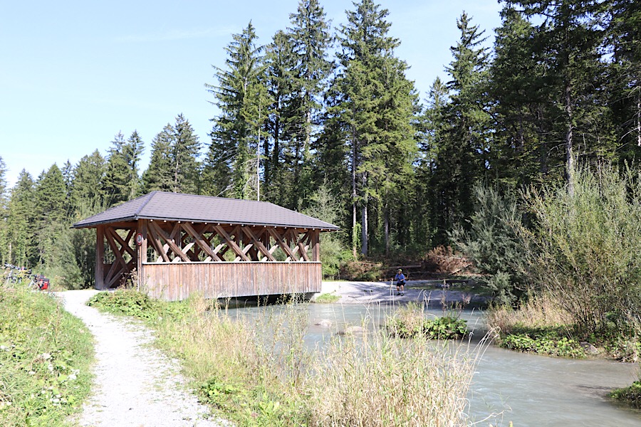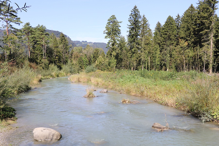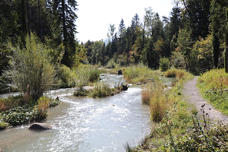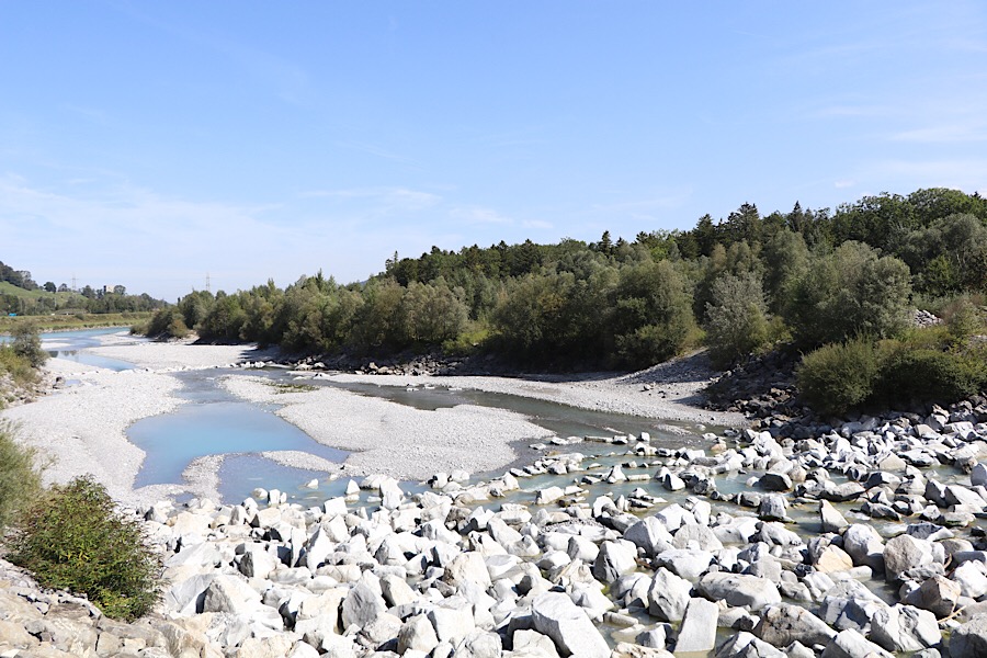 Das Wetter einfach sensationell, über 20°C mitten im September – die idealen Bedingungen für Radtouren. Wir starten um 11:00 vom CP und nehmen den Dammweg, der im Auwald der Ill verläuft. Die Ill ein 75 km langer Fluss, der nur in Vorarlberg verläuft.