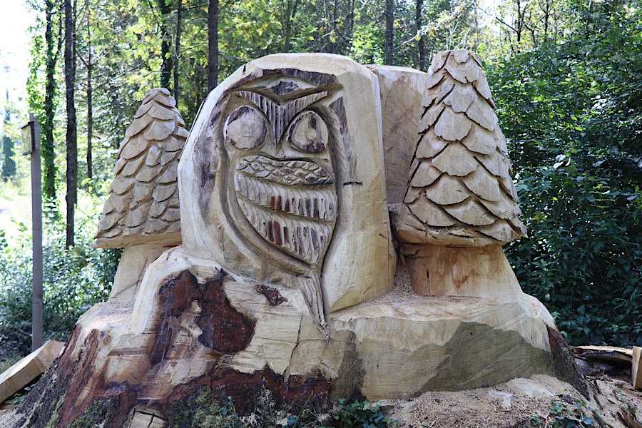Bei der Doppeltanne – GC1Q8D4 von Burgfee – einem Schnitzkunstwerk für einen Bürger in Gisingen wegen dessen besondere Verdienste um die Gemeinde. Die Widmung erfolgte am 18.6.1998.