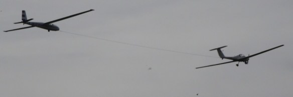 Nun nähern wir uns dem militärischen Sperrgebiet. Hier ist die Hubschrauberstaffel des Österreichischen Bundesheers stationiert. Der Flughafen wird aber auch von SegelfliegerInnen genutzt. Zumindest beobachten wir einige Starts.