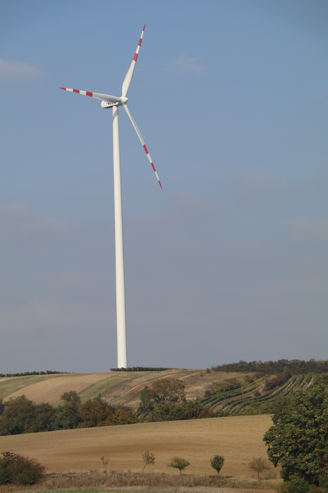 Bei GS#N 03 Kanal sind wir schnell erfolgreich. Heute am Wochenende ist doch einiger Verkehr auf der L3029. GS#N 04 Grenzstein erreichen wir um 14:30. Über dem Hügel hören wir das Rauschen der Flügel von den Windkraftwerken. Bei akustischen Messungen hat man typische Werte von ca. 95 dB für kleine Windenergieanlagen bis 100 kW und 105 bis 107 dB für Multimegawattanlagen mit Rotordurchmesser bis 130 m gemessen.