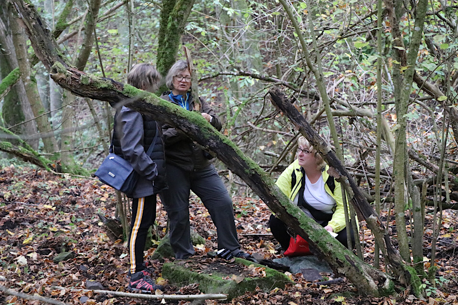 Auf der ehemaligen Bahntrasse gings weiter zu GC5C8X7 – Level 7 – das Relikt. Auch hier haben wir uns weiter durch den Dschungel gekämpft und das Relikt konnte sich nicht lange vor uns verbergen. Nach entsprechender Huldigung haben wir wieder alles schön verpackt und verstaut, damit auch die nächsten Verehrer die Heilige Wuz vorfinden. Gratulation an unseren Geburtstagsoldie – sie hat beim Geocaching die 200ter-Marke überschritten.