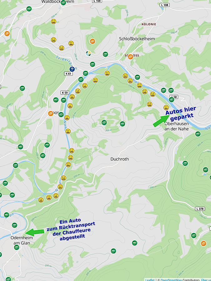 Wir starteten in Oberhausen an der Nahe. Vorbei am Campingplatz näherten wir uns der ersten Dose von HAL & Sucher Entertainment – GC5EB3Z – Level 1 Start the Game… die Dosen der Pandora. Rechts von uns die insgesamt 125 km lange Nahe, über uns bedrohlich dunkle Wolken. Hier hatte Donna Makrella den richtigen Blick, zwecks Körpergröße musste Schönhaar ran. Wir hofften natürlich, dass durch unser Öffnen möglichst wenige Untugenden und Laster entwichen sind.