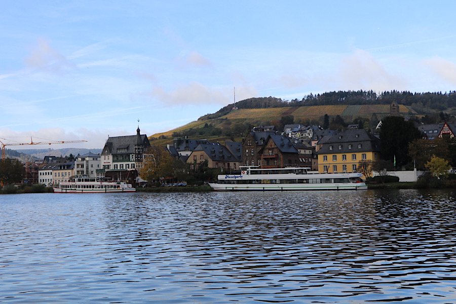Nachmittags schlendern wir über die Moselbrücke von Trarbach nach Traben. Am beginnenden 20. Jahrhundert gehörten sie zu den ersten Städten Deutschlands, wo elektrische Beleuchtung eingeführt wurde.
