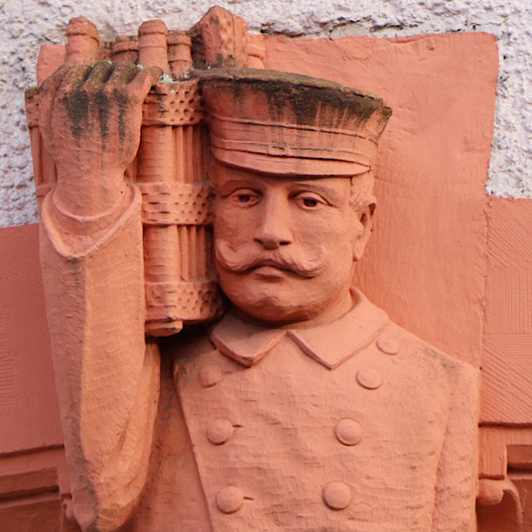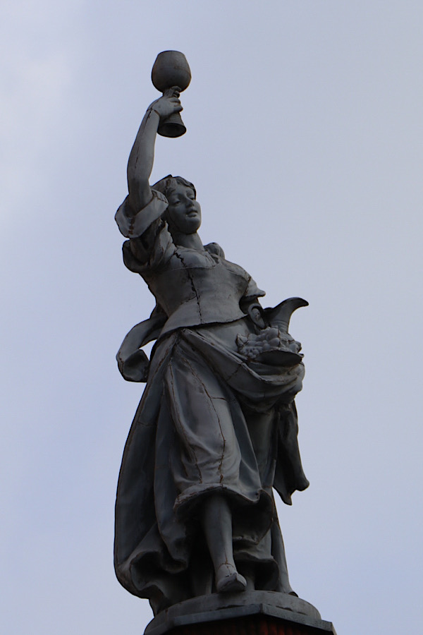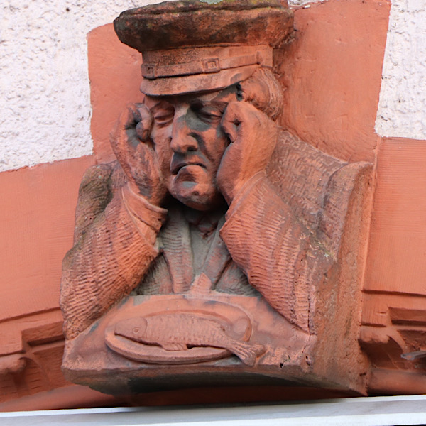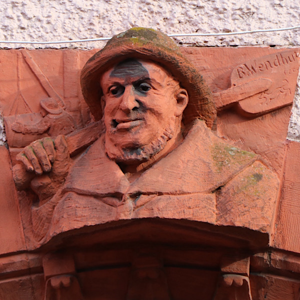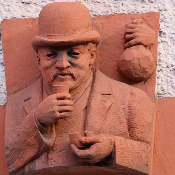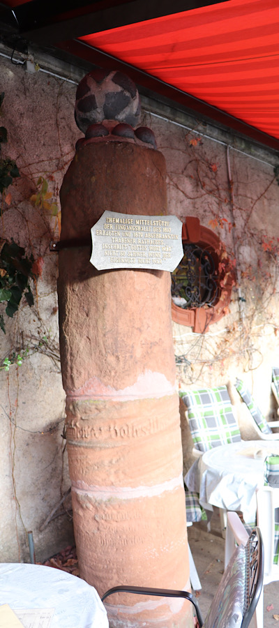Interessante Figuren am Lorettahaus vom in sich versunken Wirtshausgast bis zur Arbeiterin am Weinberg. Bei einem Spaziergang suchten wir Fanny 2.0 ein Geocache von SchatzsucherTT T+K und cachermensfriends – GC48KE9. In der Nähe des Bouleplatzes wurden wir schnell fündig. Eine kleine Stärkung genehmigten wir uns im Cafe „Zum Anker“, wo vor dem Eingang die ehemalige Mittelstütze des 1612 erbauten Rathaus, das 1879 abgebrannt ist, steht. Anschließend erforschten wir die „Geschäftswelt“ von Traben, denn meine Schwester wollte sich als Handelsangestellte hiesige Geschäfte ansehen.