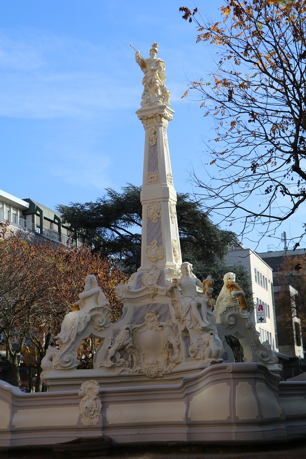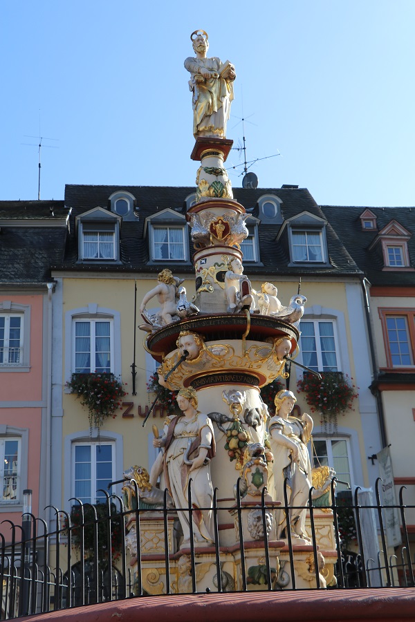 Mit dem Petrusbrunnen ziert ein zweites freiplastisches Werk den Hauptmarkt von Trier. Er wurde 1595 von Ruprecht Hoffmann nach dem Vorbild des Nürnberger Tugendbrunnens als Stiftung des Erzbischofs Johann von Schönborn schräg gegenüber dem Marktkreuz errichtet und enthält in seiner Symbolik zahlreiche Spitzen gegen die Stadtregierung. Hier loggen wir den Mark(i)tplace – GC7B83M von Team ODGJ.