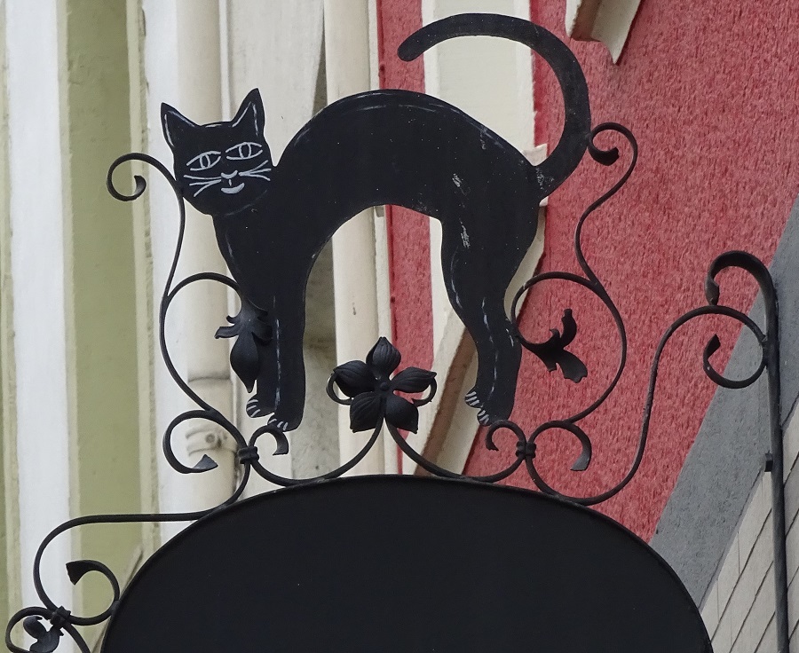 Bei unserem Besuch sind wir zuerst geflasht von einer „schwarzen Katze“, die überall und mind. alle 10 Meter uns auf Plakaten, Schildern oder historischen Hinweisen entgegen springt.