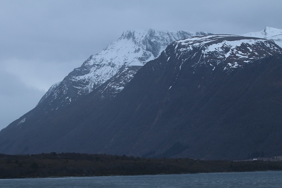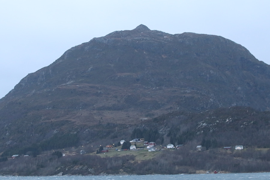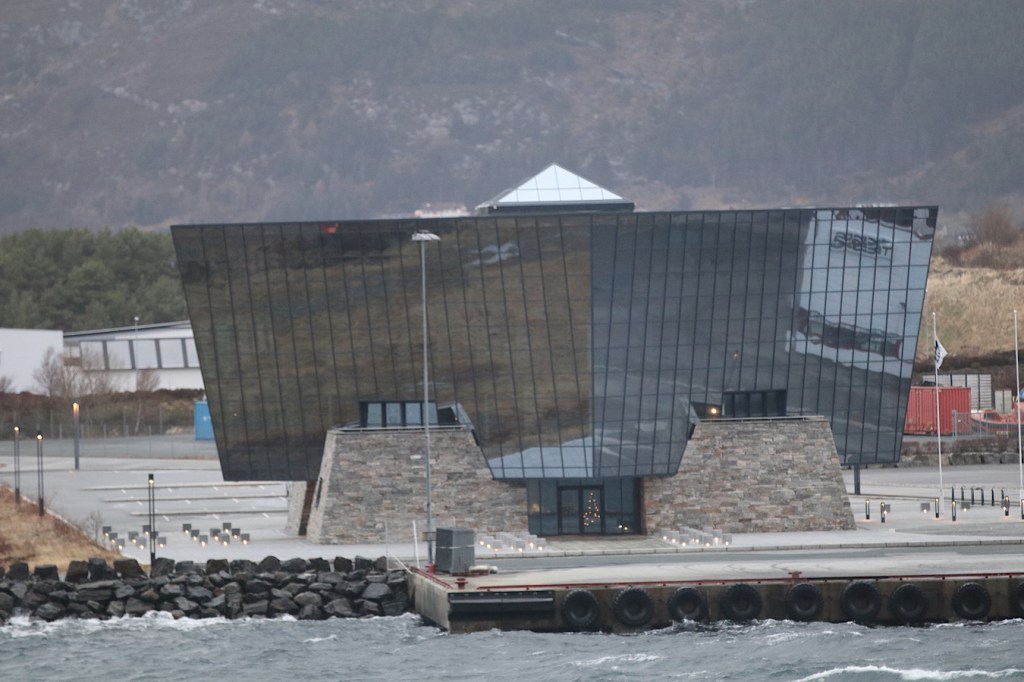 Um die Mittagszeit wagten wir uns auf Deck 8. Mittlerweile hatte die Spitsbergen ruhigere Gewässer in den Fjorden erreicht und wir schnupperten die Meeresbrise. Die Temperaturen waren deutlich über dem 0-Punkt, nur der Wind pfiff uns um die Ohren. Im Fjord fuhren wir an Harstad vorbei (siehe Foto oben), um ein paar Minuten später auf der anderen Fjordseite in Torvik anzulegen.